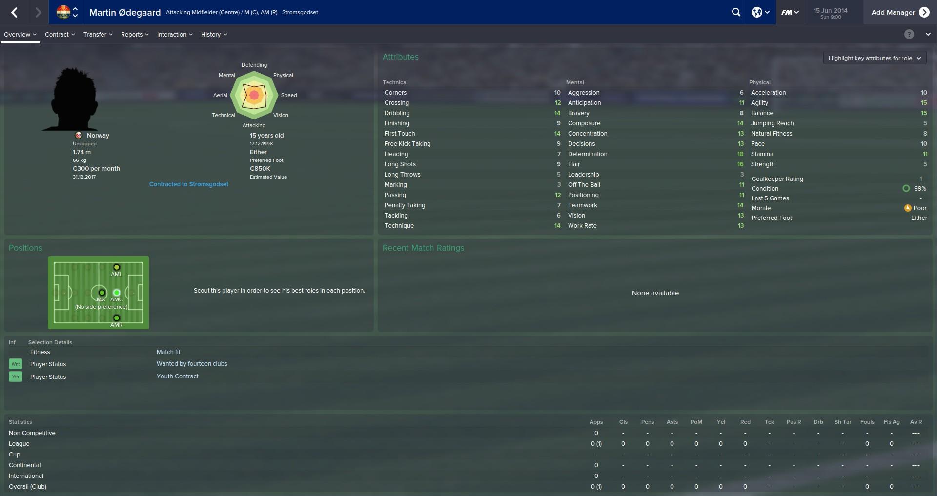 Assez fun la pancarte faite par le père de Ødegaard qui avait demandé à FM d'ajouter son fils dans la database (impossible initialement vu qu'il n'a que 15 ans). Et ça a été accepté et il a des stats de folie :