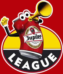 Chapiteau ma commande c ecrire roroplots en haut a droite et FC Jupiler league en bas a gauche en noir jaune et rouge sur l'image de la Jupiler Pro League